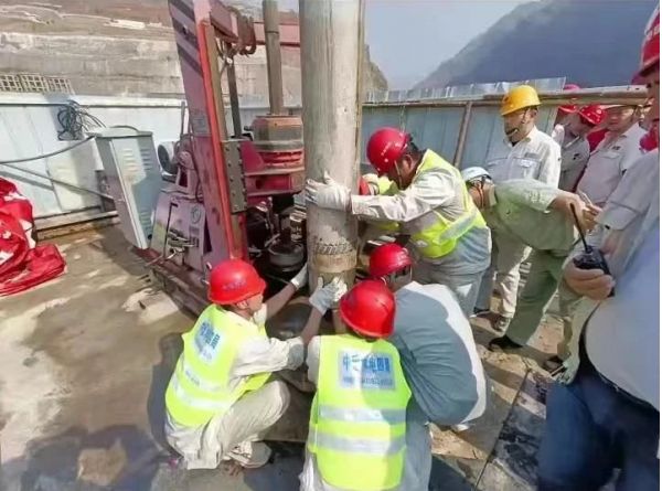 2023年4月12日,白鶴灘水電站左岸11號壩段使用中地裝重探公司研制的GQ-60型工程鉆機取出長36.74米、直徑245毫米低熱混凝土芯樣,這是繼白鶴灘大壩2019年取出25.7米長芯,2022年取出34.86米長芯之后,再次打破世界最長常態(tài)混凝土芯樣紀錄。