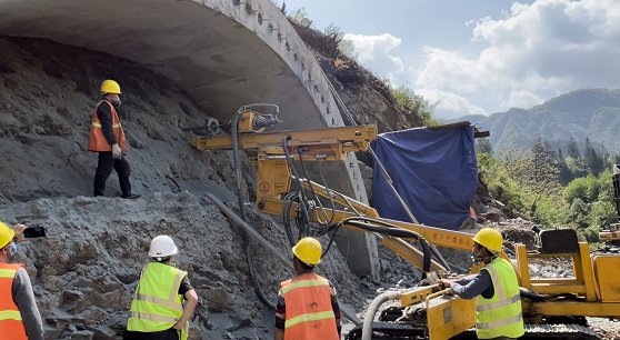 MGY-120G高臂多工藝鉆機(jī),是重探公司在MGY-120H、MGY-90L全液壓錨固鉆機(jī)的基礎(chǔ)上研制開發(fā)的全新鉆機(jī),它具有可根據(jù)水電廊道的大小選配給進(jìn)行程,鉆進(jìn)能力大,操作及運(yùn)輸方便,結(jié)構(gòu)新穎等特點(diǎn)。 該鉆機(jī)主要用于水利、水電站廊道、隧道、邊坡治理中錨固孔、排水孔、灌漿孔、檢測(cè)取芯孔施工,以及廊道管棚支護(hù)孔的施工。 3月下旬,該產(chǎn)品實(shí)現(xiàn)銷售,4月中旬在貴州某高鐵隧道項(xiàng)目的超前取芯鉆探施工中得到了業(yè)主、客戶、操作者的高度認(rèn)可和驗(yàn)收。該隧道項(xiàng)目具有巖層復(fù)雜,硬度差別大,孔深13.3米后才達(dá)到合適的取芯位置,前13.3米不能取芯的情況下,在我公司技術(shù)員指導(dǎo)下用潛孔錘跟管快速鉆進(jìn),鉆機(jī)速度大致為0.35米/分鐘。在鉆進(jìn)13.3米后到達(dá)合適的取芯位置,采用單管高速取芯35米,取芯完整,平均取芯鉆進(jìn)速度為0.2米/分鐘,35米取芯總耗時(shí)14.5小時(shí)。 客戶評(píng)價(jià)MGY-120G鉆進(jìn)操作簡(jiǎn)單,保養(yǎng)維護(hù)方便,鉆進(jìn)速度快,取芯完整,作業(yè)范圍大等優(yōu)點(diǎn)。