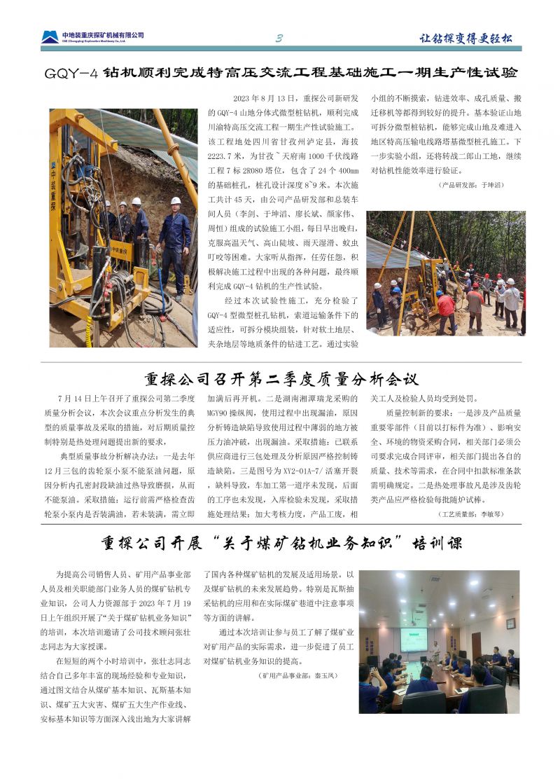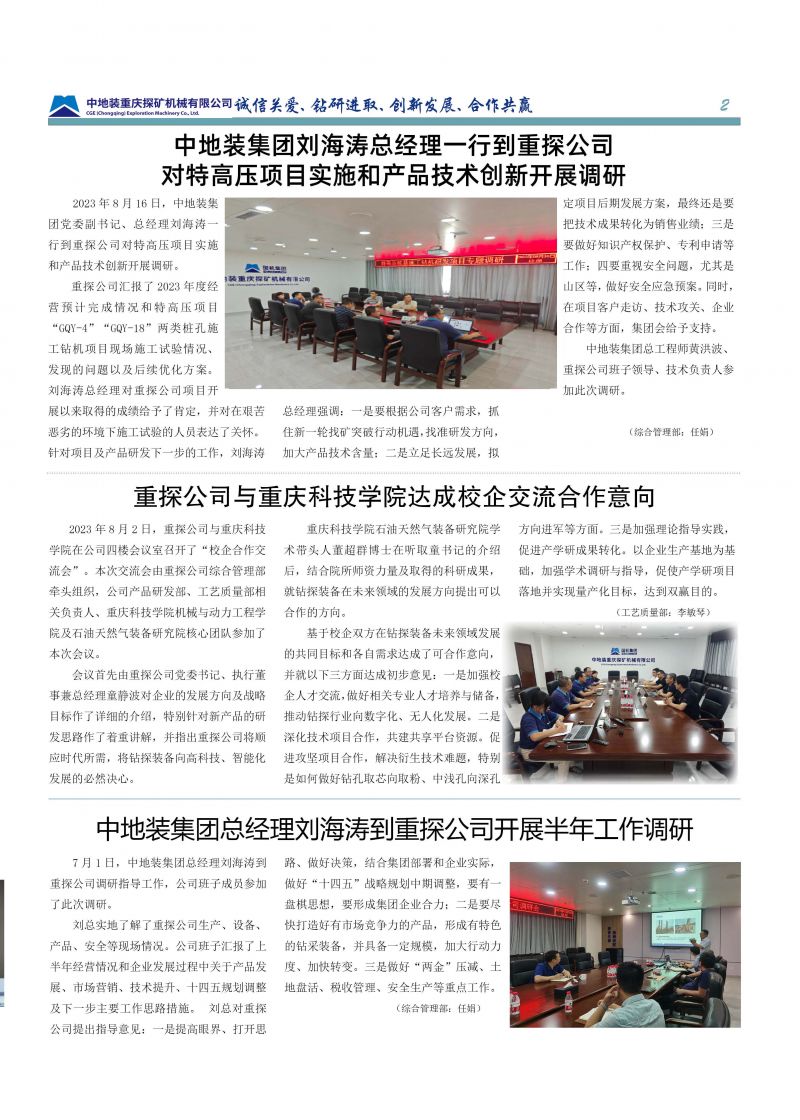 中地裝(重慶)地質(zhì)裝備有限公司(簡稱“重慶地裝”)是直屬于中國機(jī)械工業(yè)集團(tuán)有限公司與中國地質(zhì)裝備集團(tuán)有限公司的中央在渝企業(yè)。公司于2025年由原中地裝重慶探礦機(jī)械有限公司(重探公司)與中地裝重慶地質(zhì)儀器有限公司(重儀公司)整合組建而成,秉承“服務(wù)國家戰(zhàn)略所需”的使命,專注于地質(zhì)裝備的研發(fā)、生產(chǎn)、銷售及技術(shù)服務(wù)。