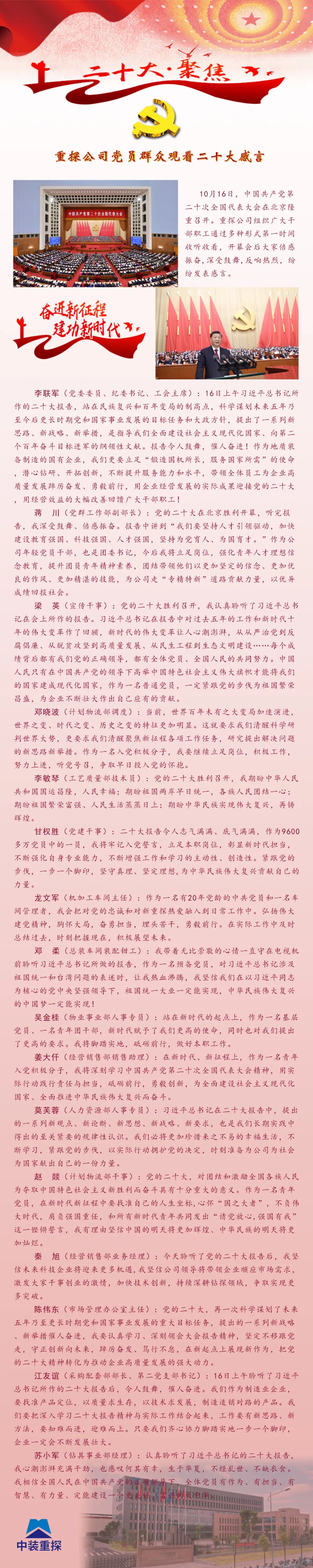 重探公司黨員群眾觀看二十大感言